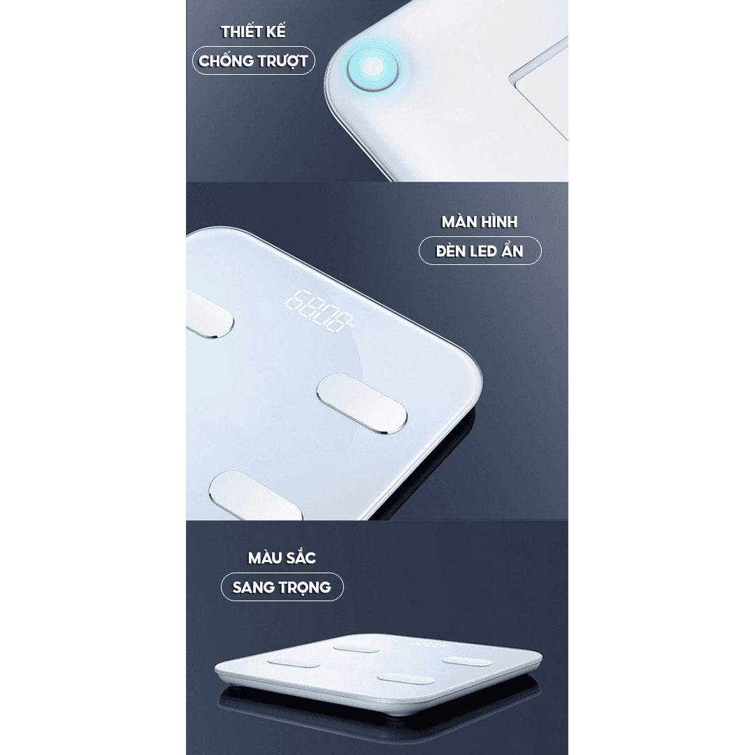 - Cân thiết kế hiện đại, sang trọng, màn hình có đèn nền hiển thị cân nặng